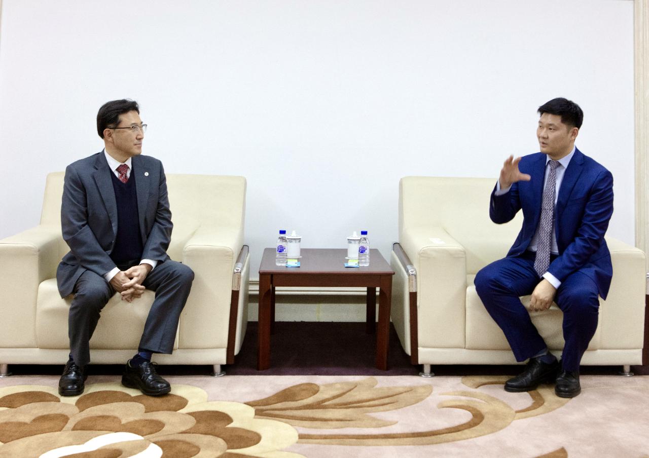3 月 6 日,韓國世翰大學總長李昇勛攜國際教育交流院副院長廖璇、孔子學院系長全愛淑來我校交流訪問。董事長 校長王思迪、常務副校長鞠秀晶、副校長王耀遠、綜合管理部副部長冷巖松、教務處副處長徐子奇在貴賓室接待來訪客人。