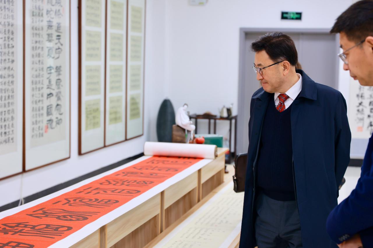 隨后,鞠校長陪同韓方貴賓參觀了我校校史館及邦家書藝苑。李晟勛總長對我校建校以來所取得的豐碩成果、校園文化定位及濃厚書香氛圍給予了高度評價,并表示對今后兩校的合作共贏充滿期待。