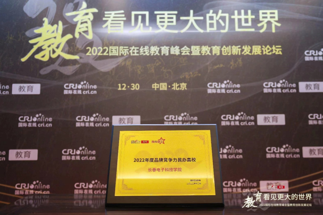 2022 年 12 月 30 日下午,由中央廣播電視總臺(tái)國(guó)際在線(xiàn)教育頻道主辦的 2022 國(guó)際在線(xiàn)教育峰會(huì)在北京舉辦。長(zhǎng)春電子科技學(xué)院獲評(píng)“ 2022 年度品牌競(jìng)爭(zhēng)力民辦高校”稱(chēng)號(hào)。國(guó)際在線(xiàn)系中央廣播電視總臺(tái)主辦的中央重點(diǎn)新聞網(wǎng)站,此項(xiàng)榮譽(yù)的獲得,充分顯示了權(quán)威媒體與社會(huì)各界對(duì)長(zhǎng)春電子科技學(xué)院辦學(xué)實(shí)力、社會(huì)競(jìng)爭(zhēng)力和品牌影響力的認(rèn)可!國(guó)際在線(xiàn)教育峰會(huì)旨在為中國(guó)教育做出突出貢獻(xiàn)的人物和機(jī)構(gòu)優(yōu)秀案例進(jìn)行展示,目前已成為行業(yè)內(nèi)最權(quán)威、最具影響力的“年度教育盛典”,在內(nèi)業(yè)廣受好評(píng)。