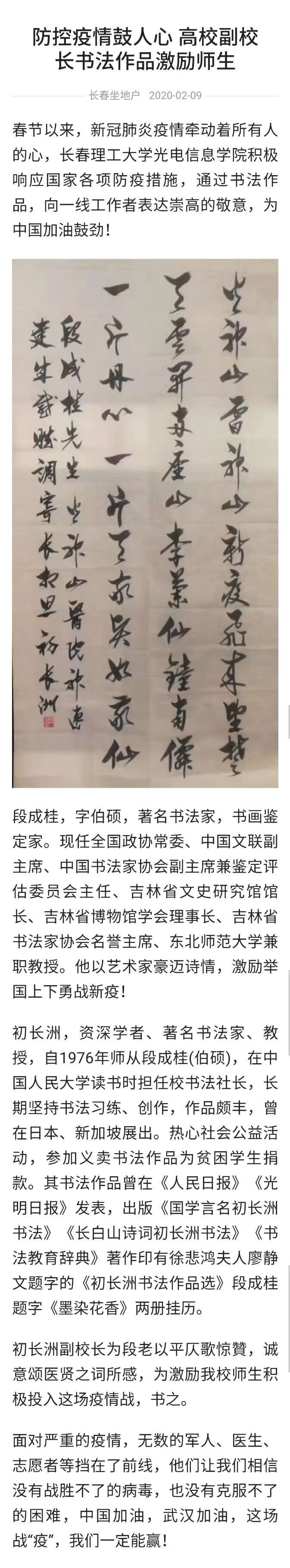 【騰訊新聞】防控疫情鼓人心?高校副校長書法作品激勵(lì)師生