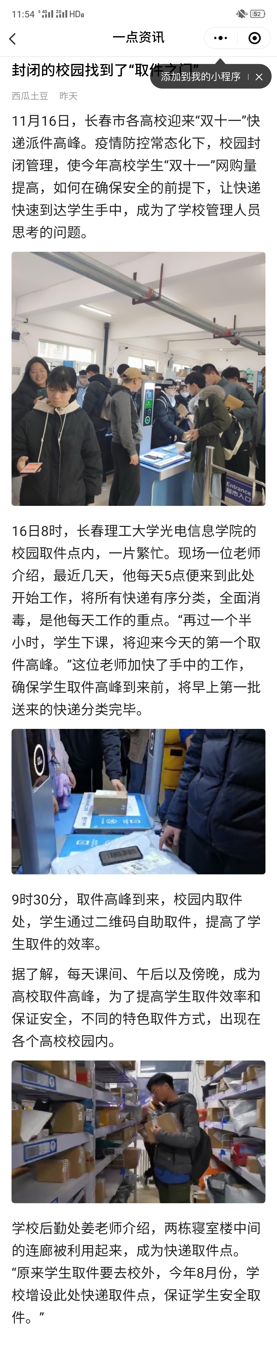 【一點(diǎn)資訊】特殊的“雙十一” 封閉的校園找到了“取件之門”