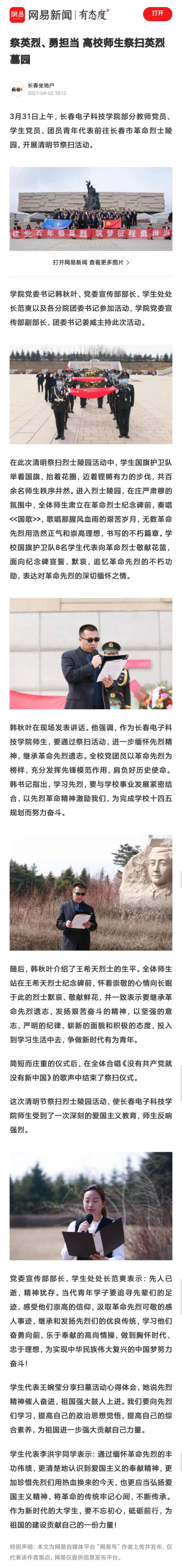 【網(wǎng)易新聞】祭英烈、勇?lián)?dāng) 高校師生祭掃英烈墓園