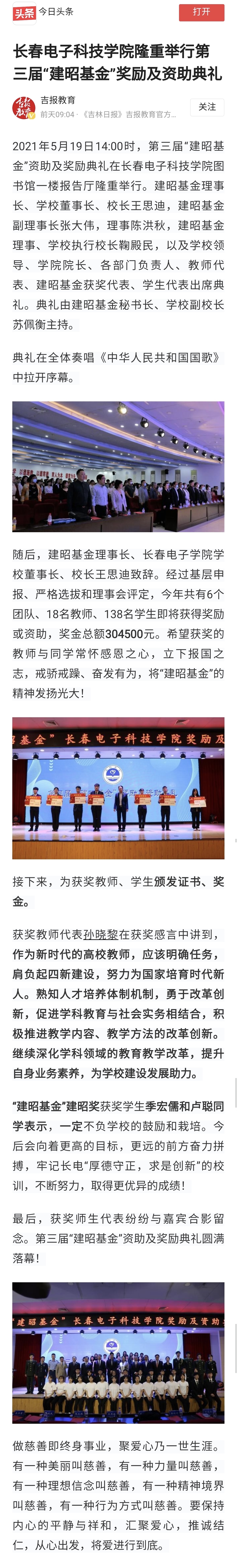【今日頭條】長(zhǎng)春電子科技學(xué)院隆重舉行第三屆“建昭基金”獎(jiǎng)勵(lì)及資助典禮