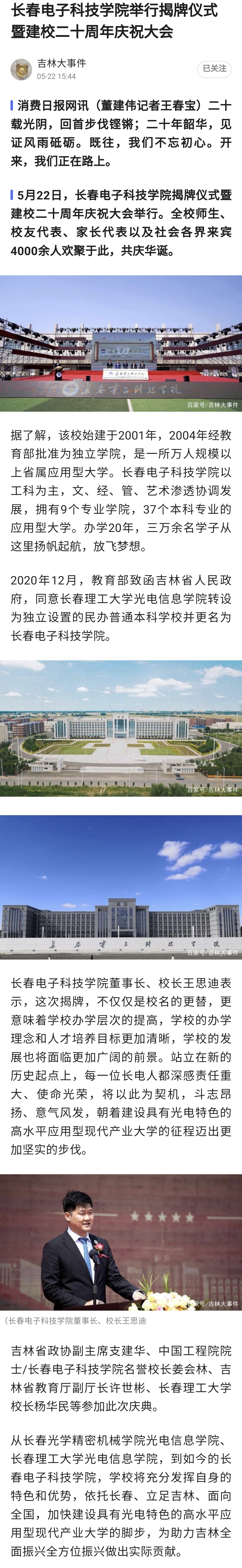 【百度APP】長春電子科技學(xué)院舉行揭牌儀式暨建校二十周年慶祝大會