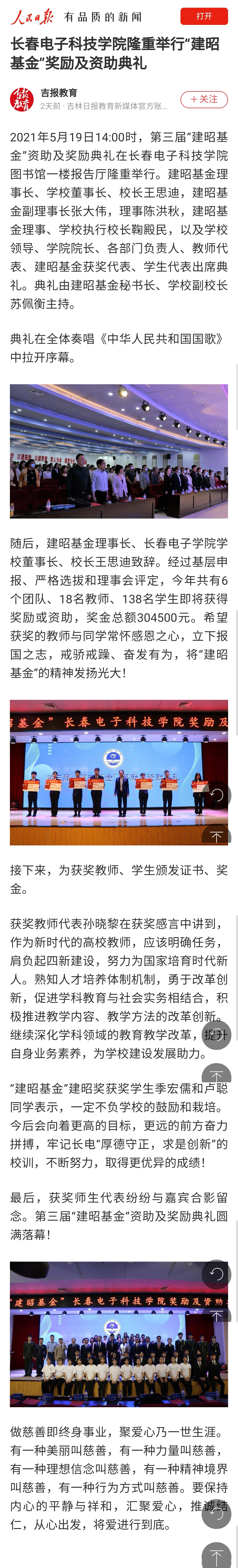 【人民日報(bào)】長春電子科技學(xué)院隆重舉行“建昭基金”獎勵及資助典禮