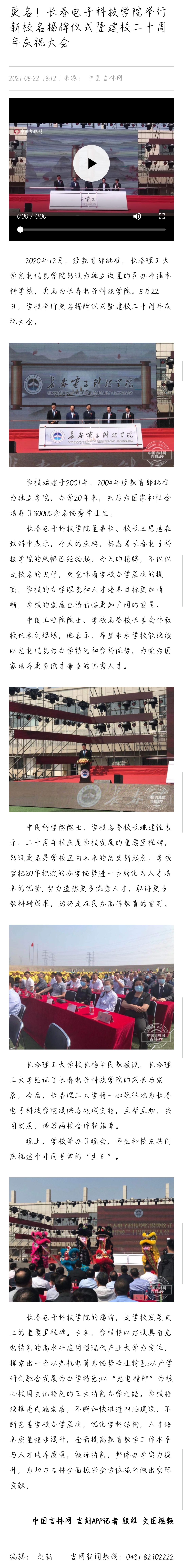 【中國(guó)吉林網(wǎng)】更名!長(zhǎng)春電子科技學(xué)院舉行新校名揭牌儀式暨建校二十周年慶祝大會(huì)