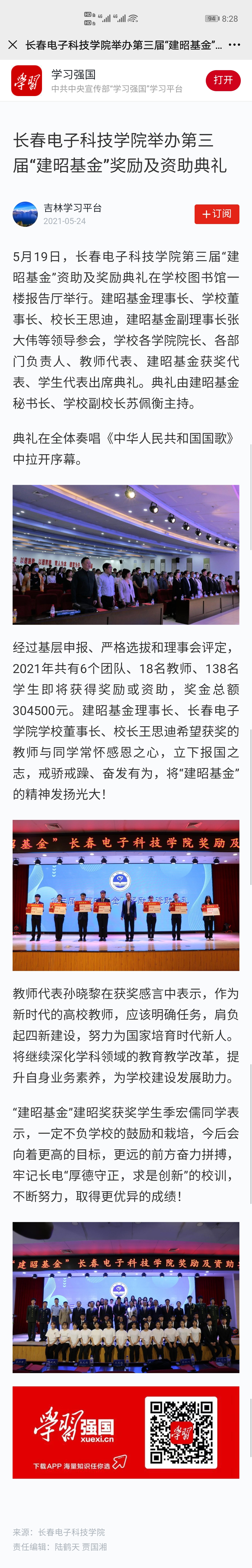 【中國教育在線】長春電子科技學(xué)院舉辦第三屆“建昭基金”獎勵及資助典禮