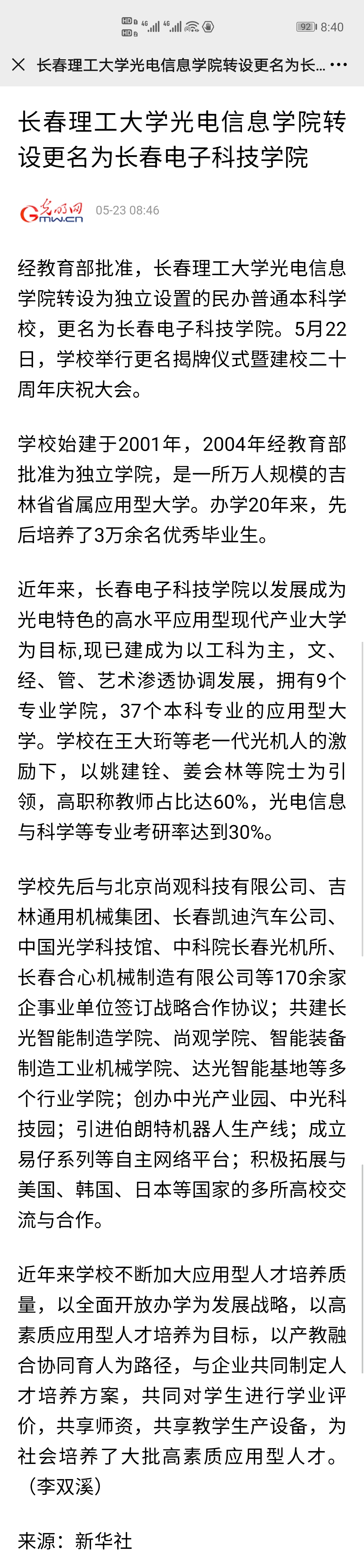 【百度app】長(zhǎng)春理工大學(xué)光電信息學(xué)院轉(zhuǎn)設(shè)更名為長(zhǎng)春電子科技學(xué)院