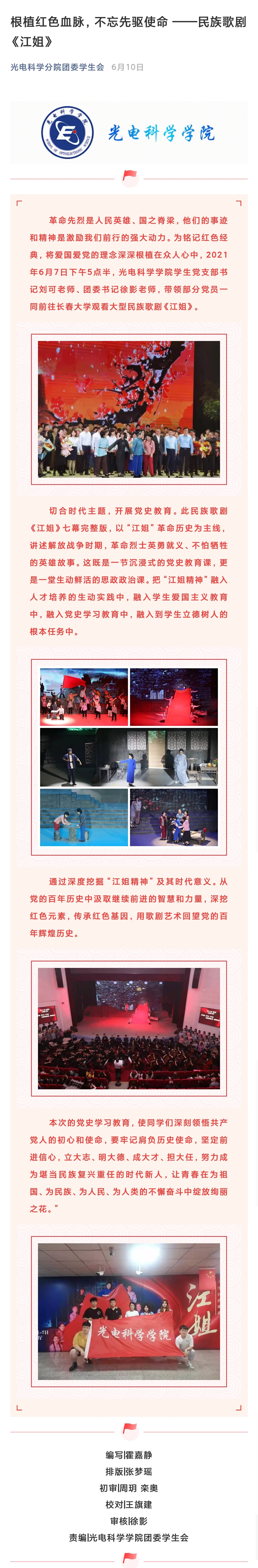 【光電科學(xué)分院團(tuán)委學(xué)生會】根植紅色血脈,不忘先驅(qū)使命 ——民族歌劇《江姐》