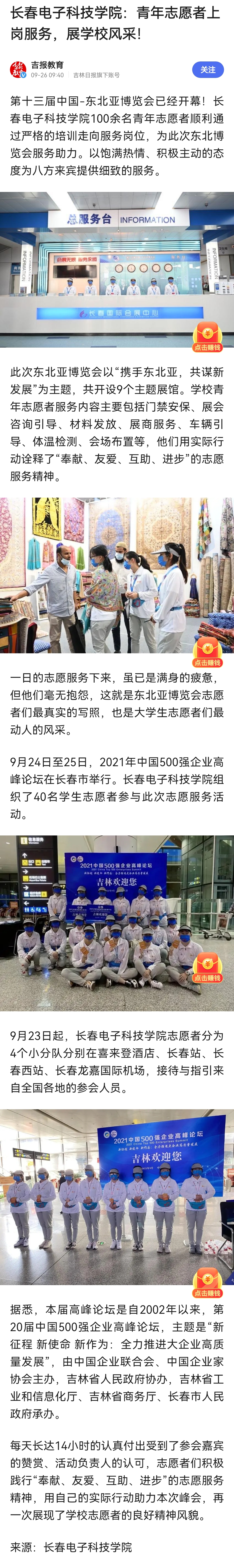 【吉報教育】長春電子科技學院:青年志愿者上崗服務,展學校風采!