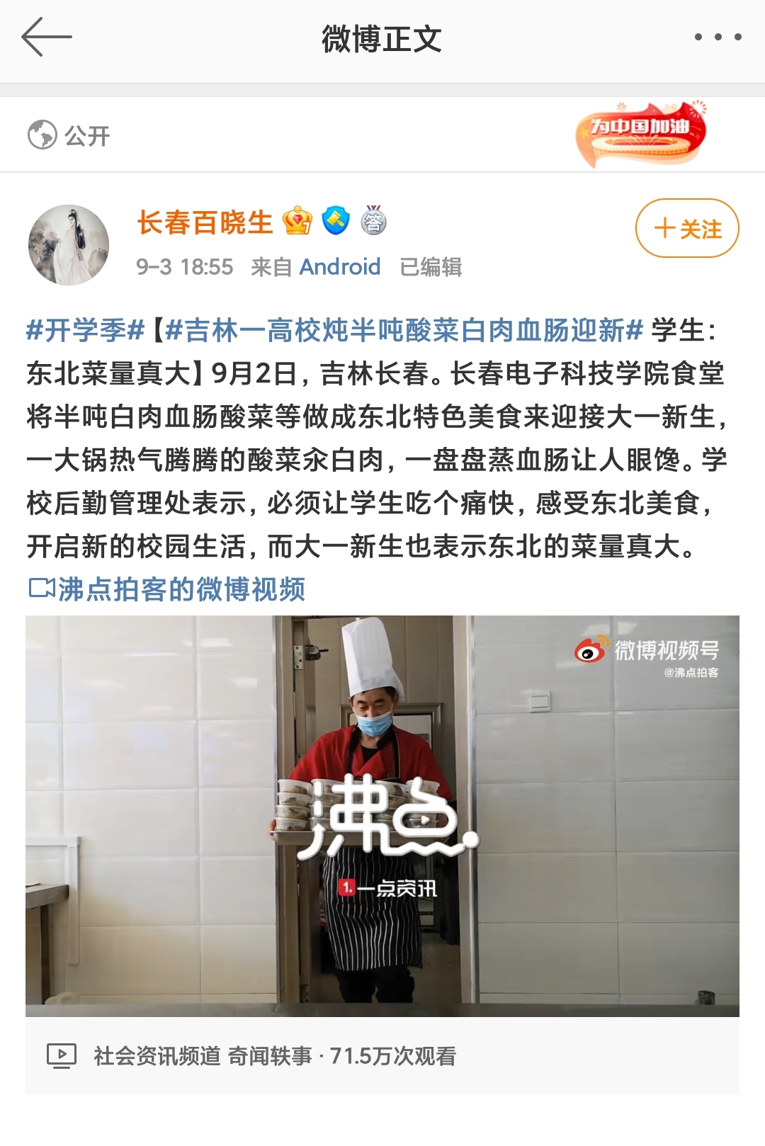 【長(zhǎng)春百曉生】#吉林一高校燉半噸酸菜白肉血腸迎新# 學(xué)生:東北菜量真大