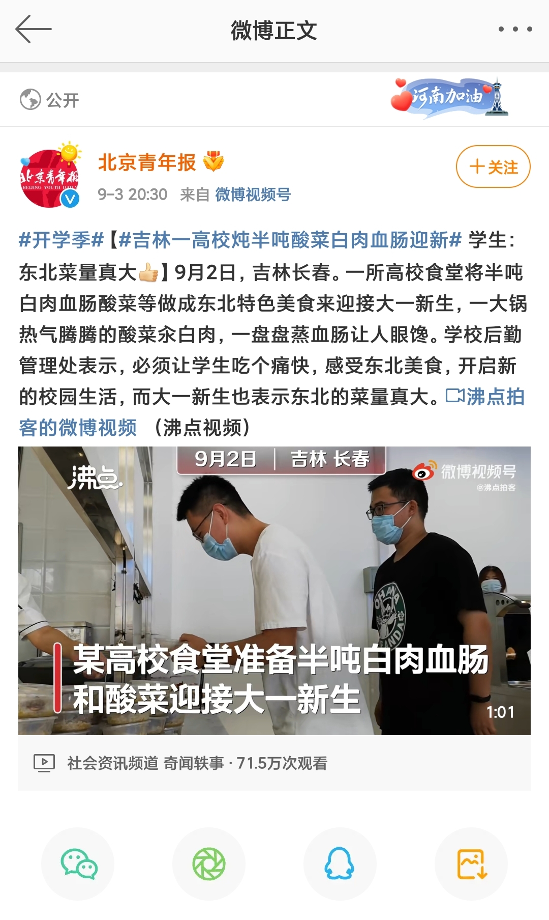【北京青年報】#吉林一高校燉半噸酸菜白肉血腸迎新# 學(xué)生:東北菜量真大