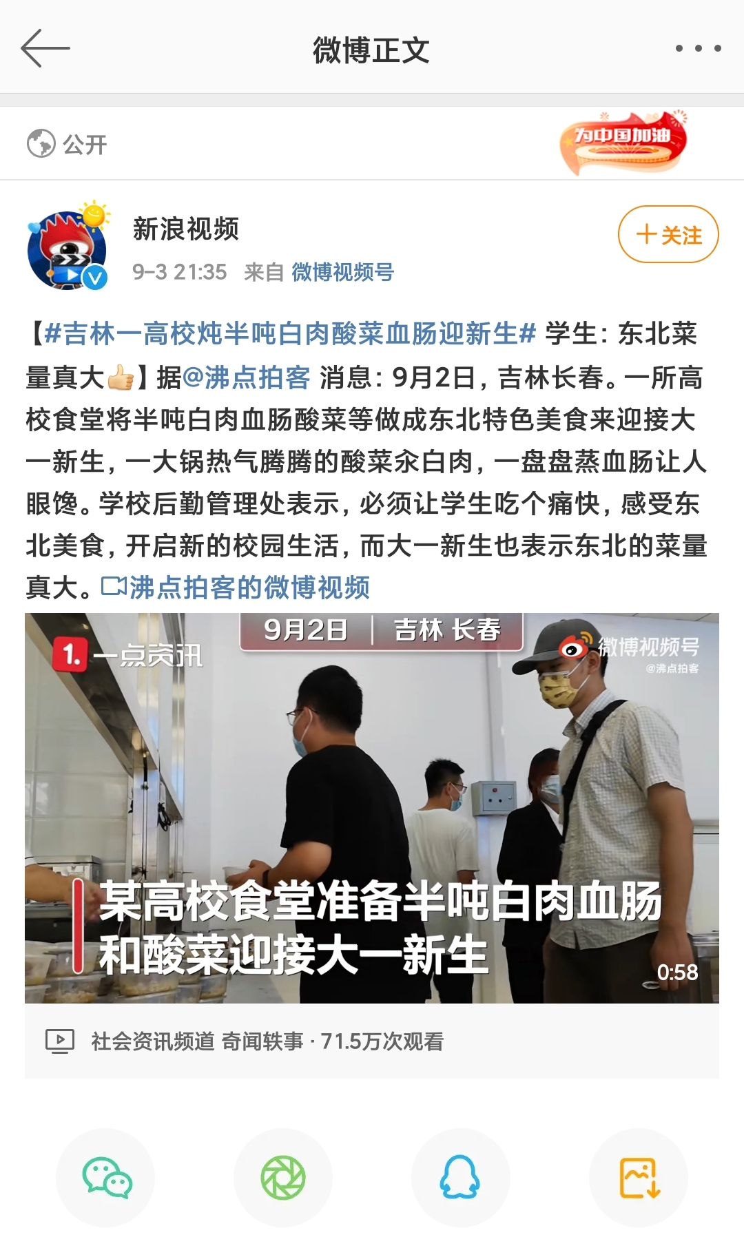 【新浪視頻】#吉林一高校燉半噸白肉酸菜血腸迎新生# 學(xué)生:東北菜量真大