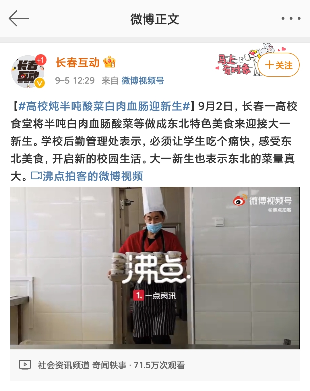 【長(zhǎng)春互動(dòng)】#高校燉半噸酸菜白肉血腸迎新生#