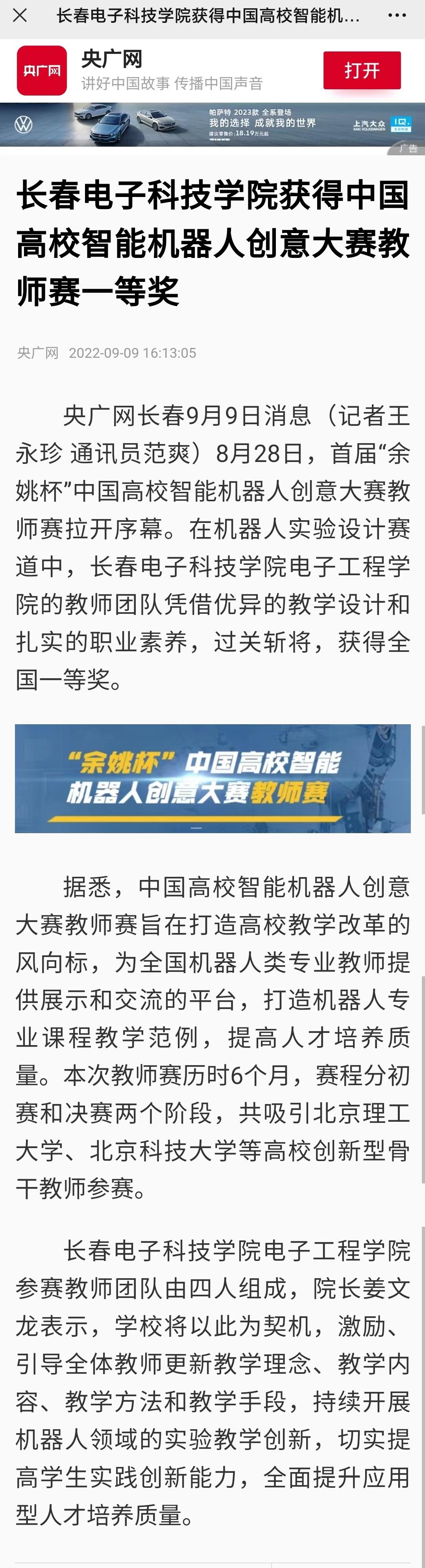 【央廣網(wǎng)】長春電子科技學(xué)院獲得中國高校智能機器人創(chuàng)意大賽教師賽一等獎