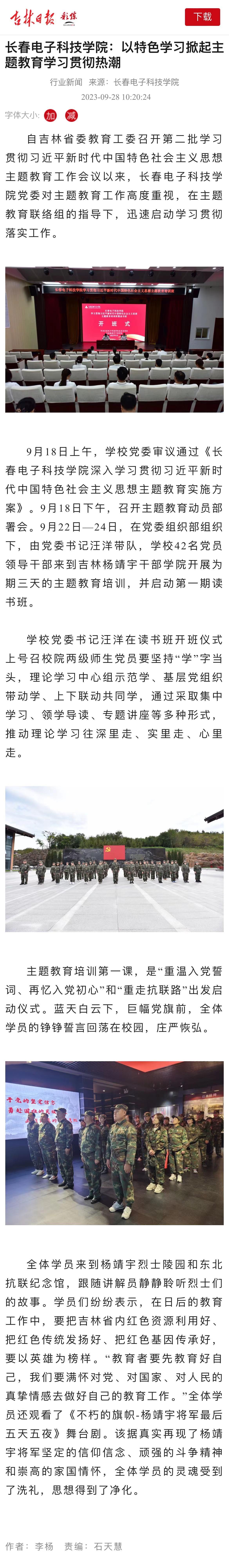 【吉林日?qǐng)?bào)】長(zhǎng)春電子科技學(xué)院:以特色學(xué)習(xí)掀起主題教育學(xué)習(xí)貫徹?zé)岢?/h2>