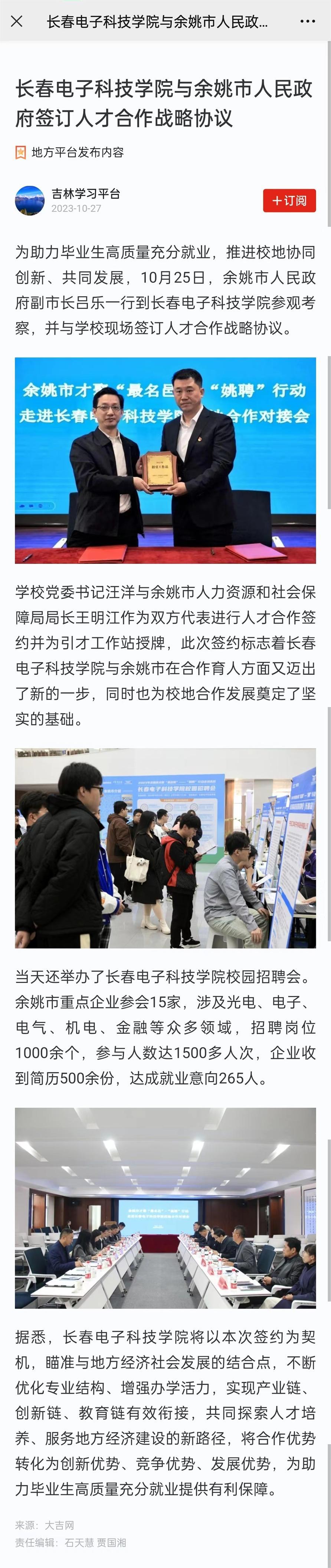【國際在線教育】校地?cái)y手合作 助推教育高質(zhì)量發(fā)展|長(zhǎng)春電子科技學(xué)院與余姚市簽訂人才合作戰(zhàn)略協(xié)議