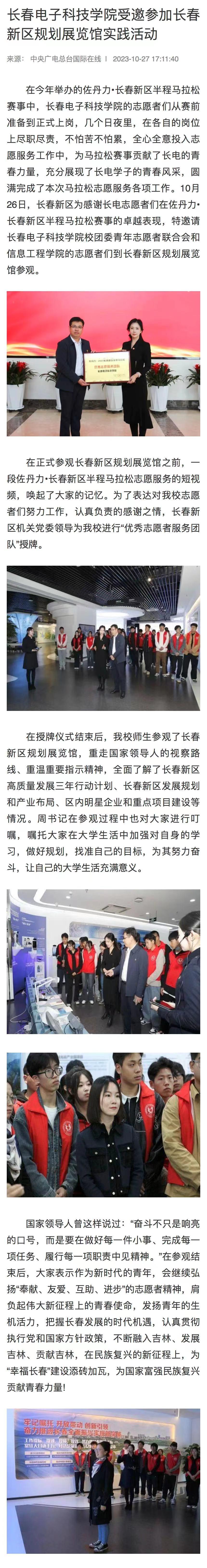 【國際在線教育】長春電子科技學院受邀參加長春新區(qū)規(guī)劃展覽館實踐活動