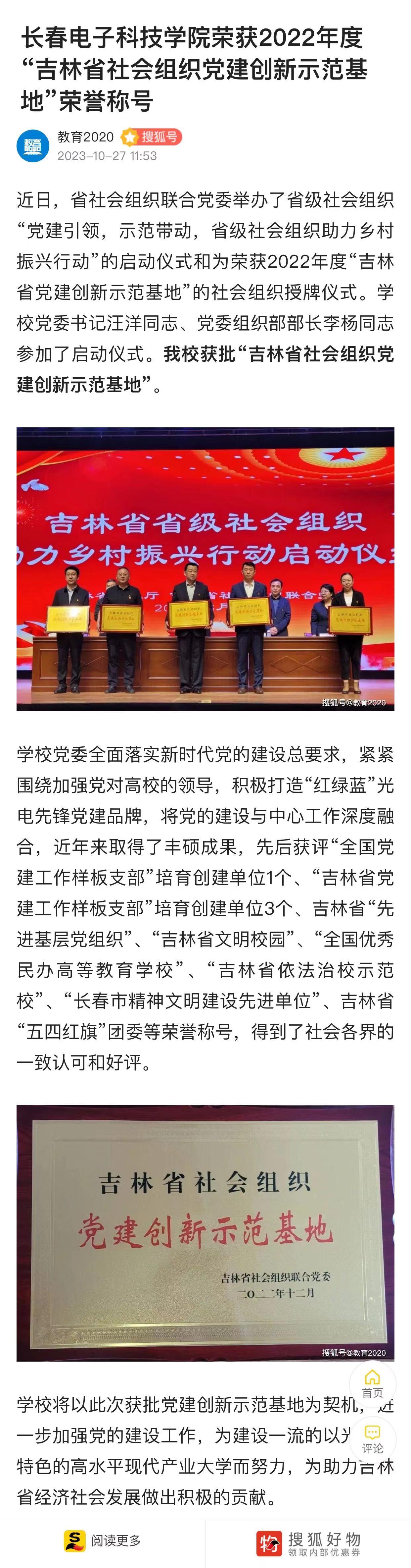【搜狐】長春電子科技學院獲“吉林省社會組織黨建創(chuàng)新示范基地”榮譽稱號