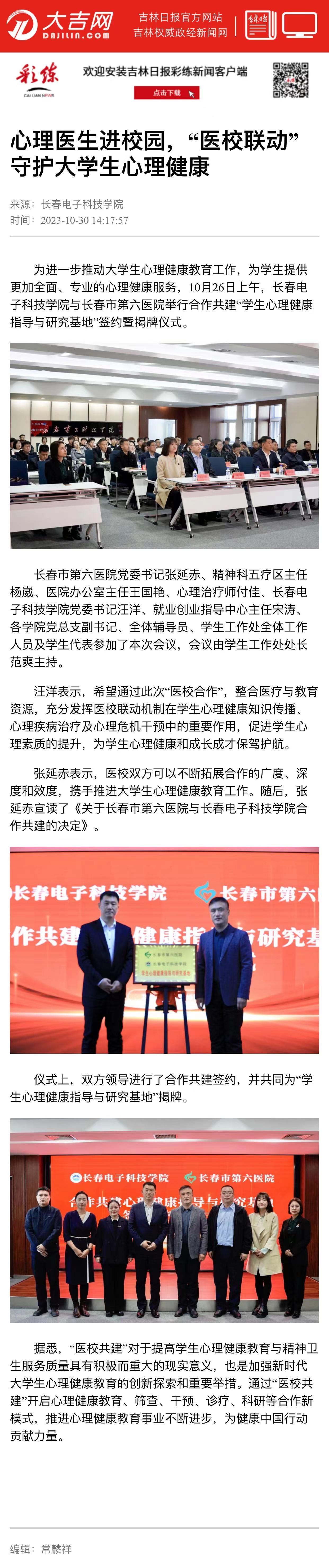 【大吉網(wǎng)】心理醫(yī)生進校園,“醫(yī)校聯(lián)動”守護大學生心理健康