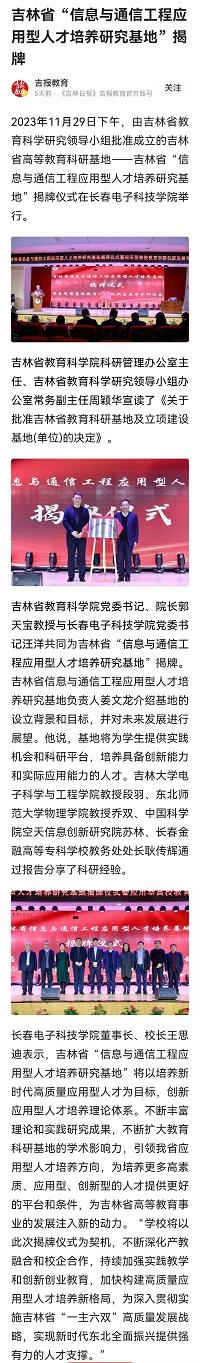 【百度】吉林省“信息與通信工程應(yīng)用型人才培養(yǎng)研究基地”揭牌