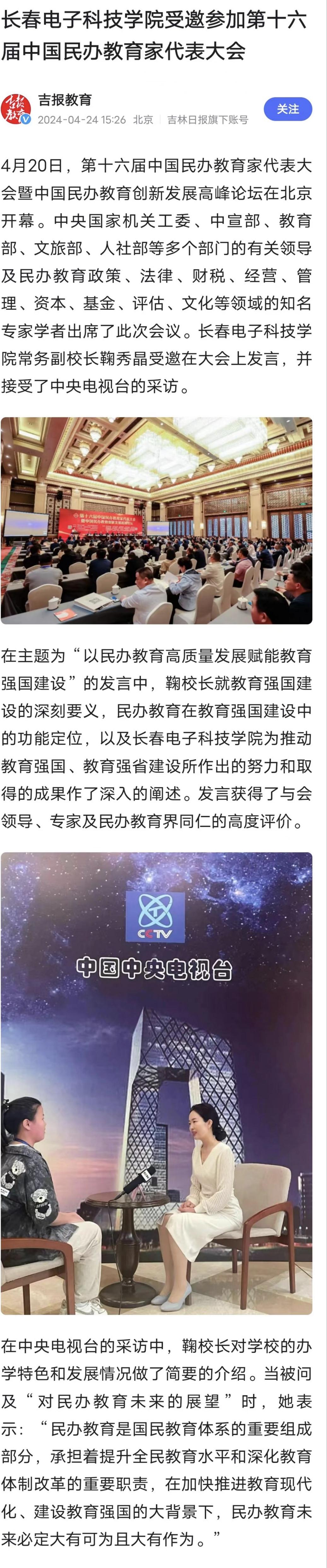 【百度】長春電子科技學(xué)院受邀參加第十六屆中國民辦教育家代表大會(huì)