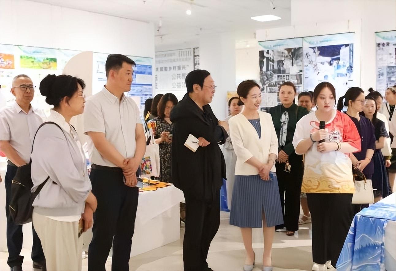 開幕式結束后,領導與嘉賓步入展館參觀。曹保明教授結合畢業(yè)生作品,生動講述了其中蘊含的東北民間文化精髓。