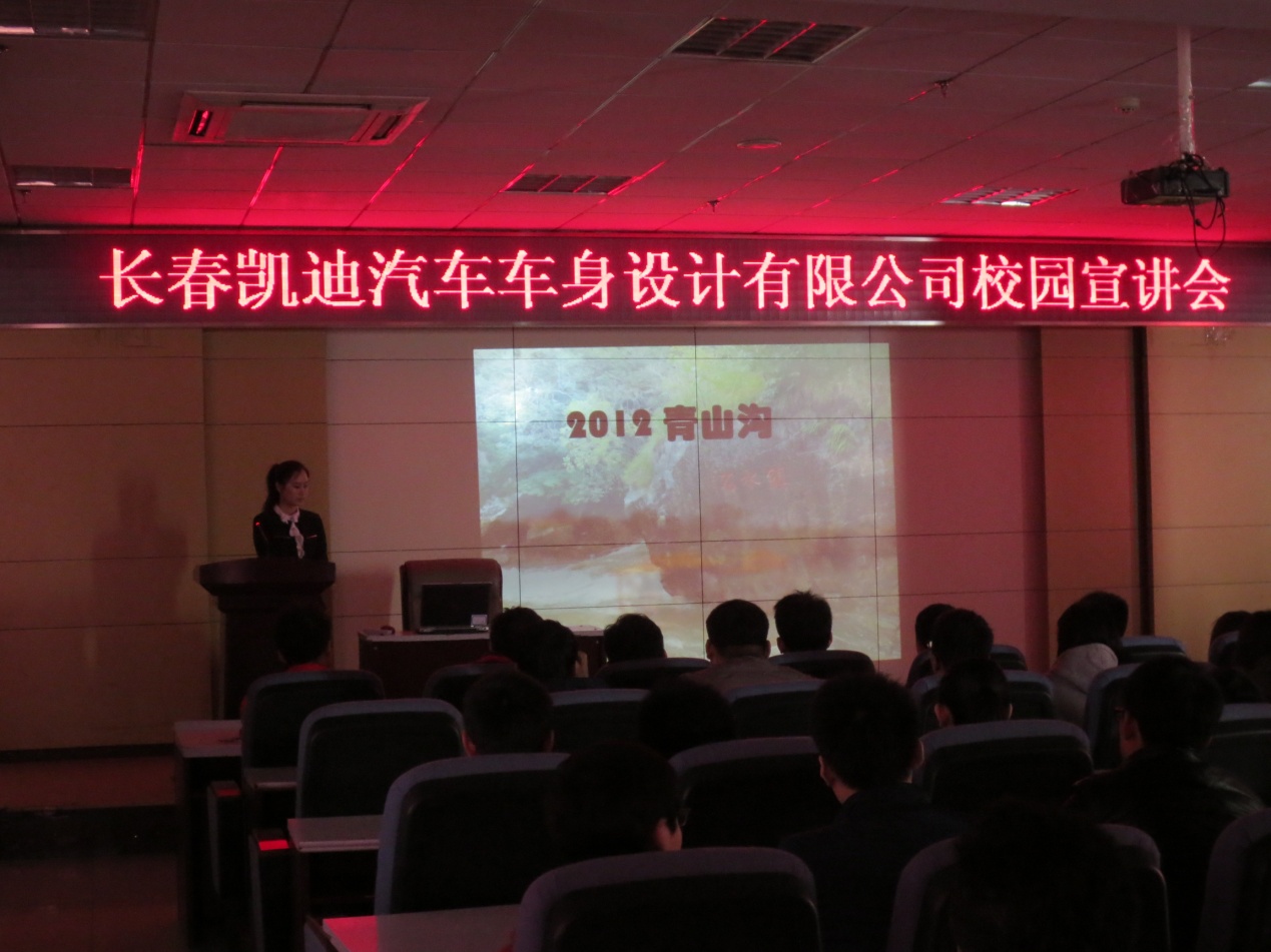 長(zhǎng)春凱迪汽車車身設(shè)計(jì)有限公司于2014年3月25日再度來到我院舉辦招聘宣傳講座,活動(dòng)由機(jī)電工程分院承辦。